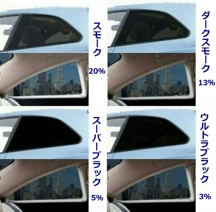 ※ フィルムカラースモーク20%、ダークスモーク13%、スーパーブラック5%、ウルトラブラック3%をご指定下さい。