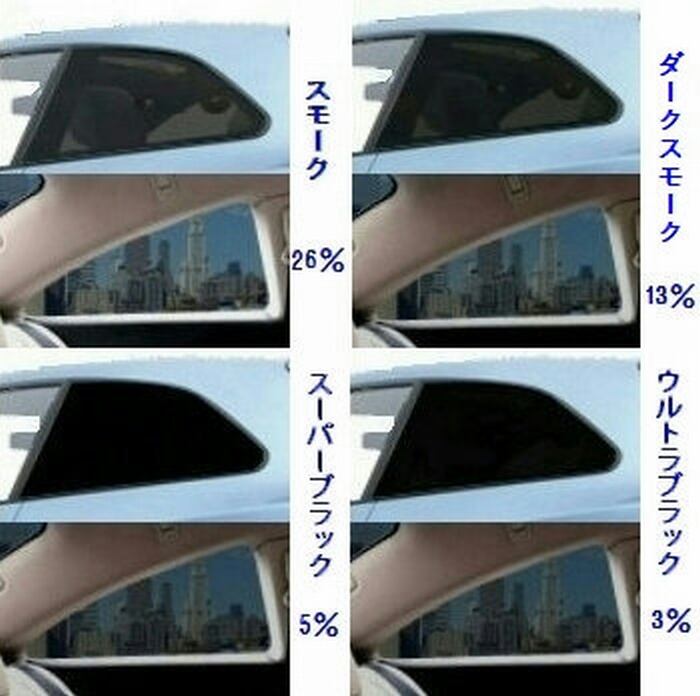 ※ フィルムカラースモーク26%、ダークスモーク13%、スーパーブラック5%、ウルトラブラック3%をご指定下さい。